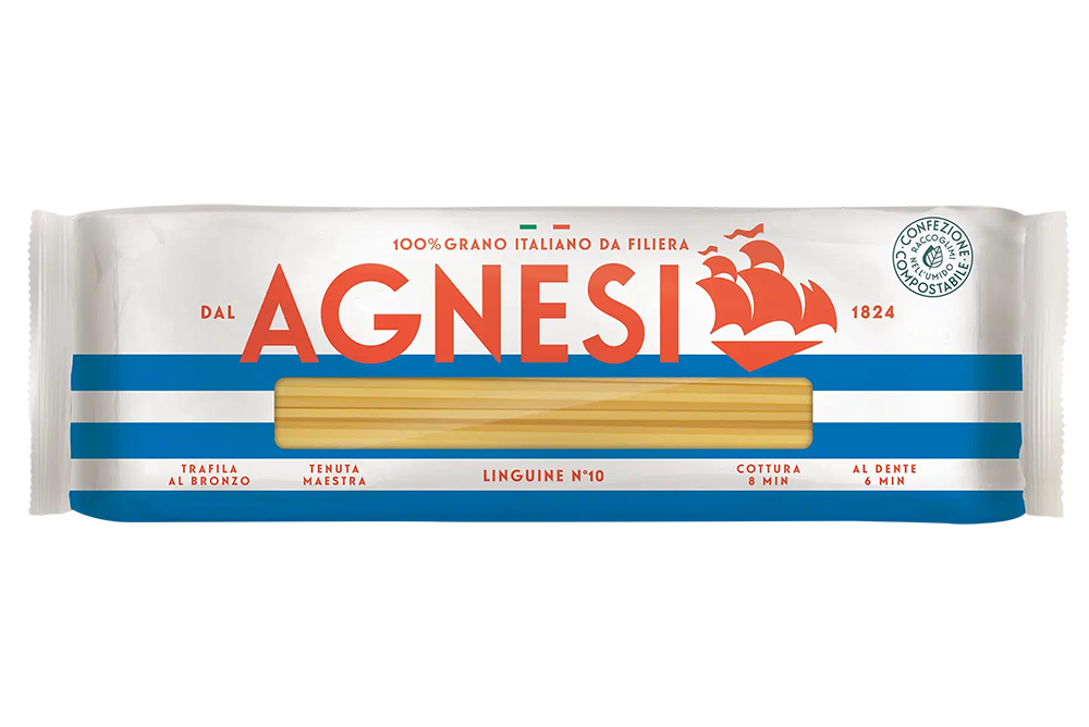Scopri la qualità superiore della pasta Agnesi Linguine n°10, realizzata con semola di grano duro e trafilata al bronzo per una consistenza perfetta. Ogni confezione da 500g è ideale per preparare piatti autentici e gustosi, mantenendo la tradizione italiana. Scegli Agnesi per un’esperienza culinaria che esalta i sapori e la freschezza degli ingredienti. Perfetta per condimenti ricchi o semplici, questa pasta è un must-have nella tua dispensa.