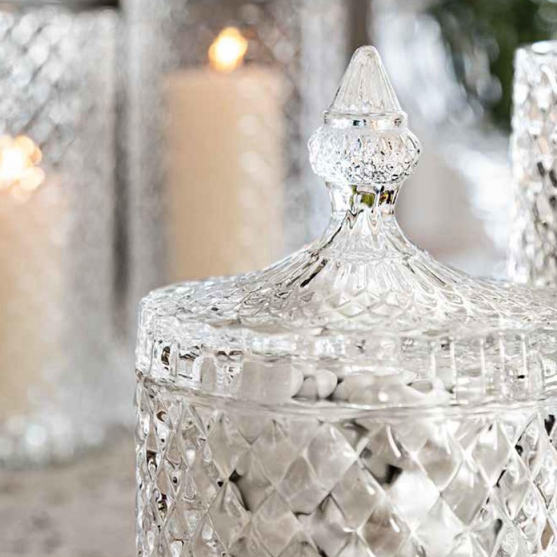 Barattoli in vetro trasparente con coperchio stile Bohemien.