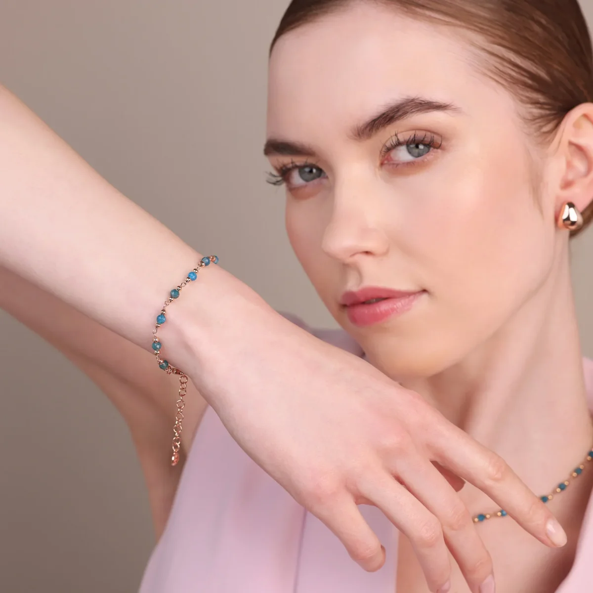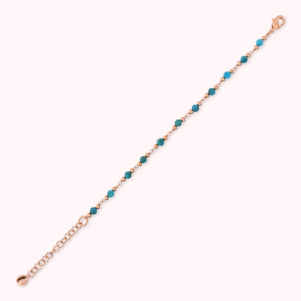 Bracciale rosario Bronzallure realizzato in lega Golden Rosé, placcata Oro rosa 18kt, con pietre naturali sfaccettate (4 mm) alternate a piccole bead lucide (3 mm). Lunghezza 16.5+4 cm di estensione. Chiusura a moschettone.
