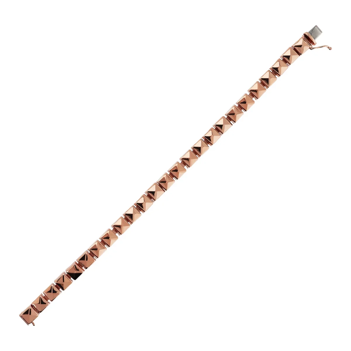 Bracciale semi rigido Bronzallure realizzato in lega Golden Rosé, placcato oro rosa 18kt, impreziosito da luminose borchie dal disegno a piramide. Pratico da indossare, con chiusura a cassetta con 8 di sicurezza.