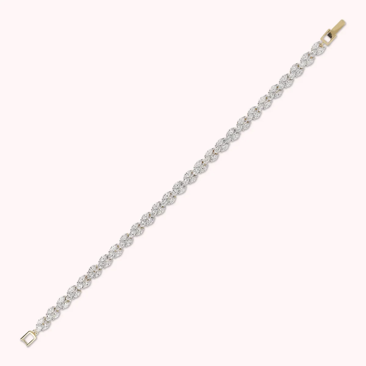 Bracciale tennis Bronzallure realizzato in lega Golden Rosé, placcato oro giallo 18kt, dal design a treccia con cubic zirconia di colore bianco; chiusura a cassetta.