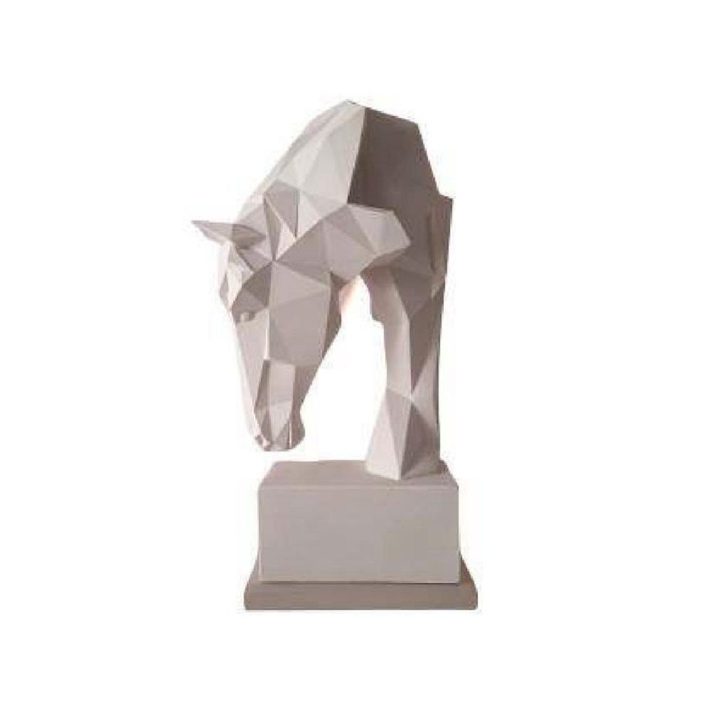 Scultura testa di cavallo geometrica in marmorino bianco su base nocciola. Made in Italy