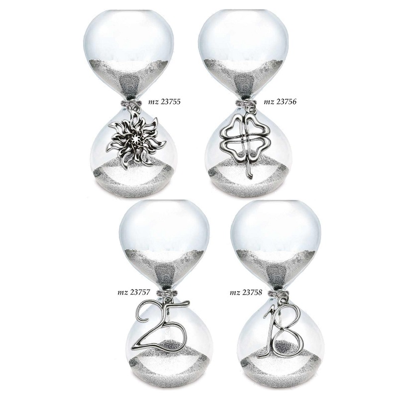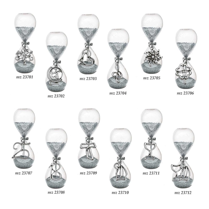 Clessidre in vetro con perline argento e ciondoli in argento.