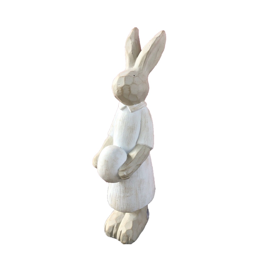 Maxi coniglia con uovo in ceramica bianca e beige