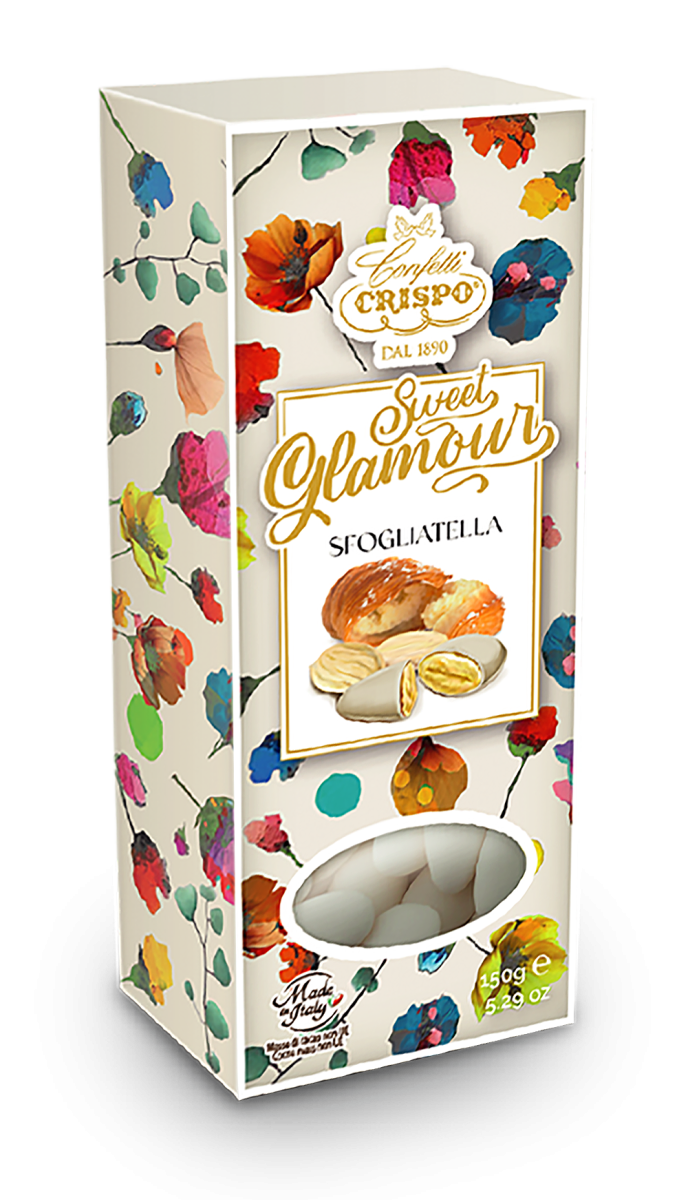 Deliziati con i confetti Sweet Glamour, un’elegante creazione dal 1890 che unisce tradizione e raffinatezza. Questa confezione da 150g presenta mandorle ricoperte di finissimo cioccolato bianco con un irresistibile gusto di sfogliatella, il tutto avvolto in un guscio di zucchero candido. Completamente senza glutine, questi confetti sono perfetti per cerimonie ed eventi speciali. La confezione, decorata con un delicato motivo floreale multicolore, custodisce al suo interno queste prelibatezze made in Italy. Ideali per confettate, bomboniere o semplicemente per concedersi un momento di dolce piacere. La consistenza croccante del guscio esterno si sposa perfettamente con la morbidezza del ripieno al caffè e la croccantezza della mandorla.