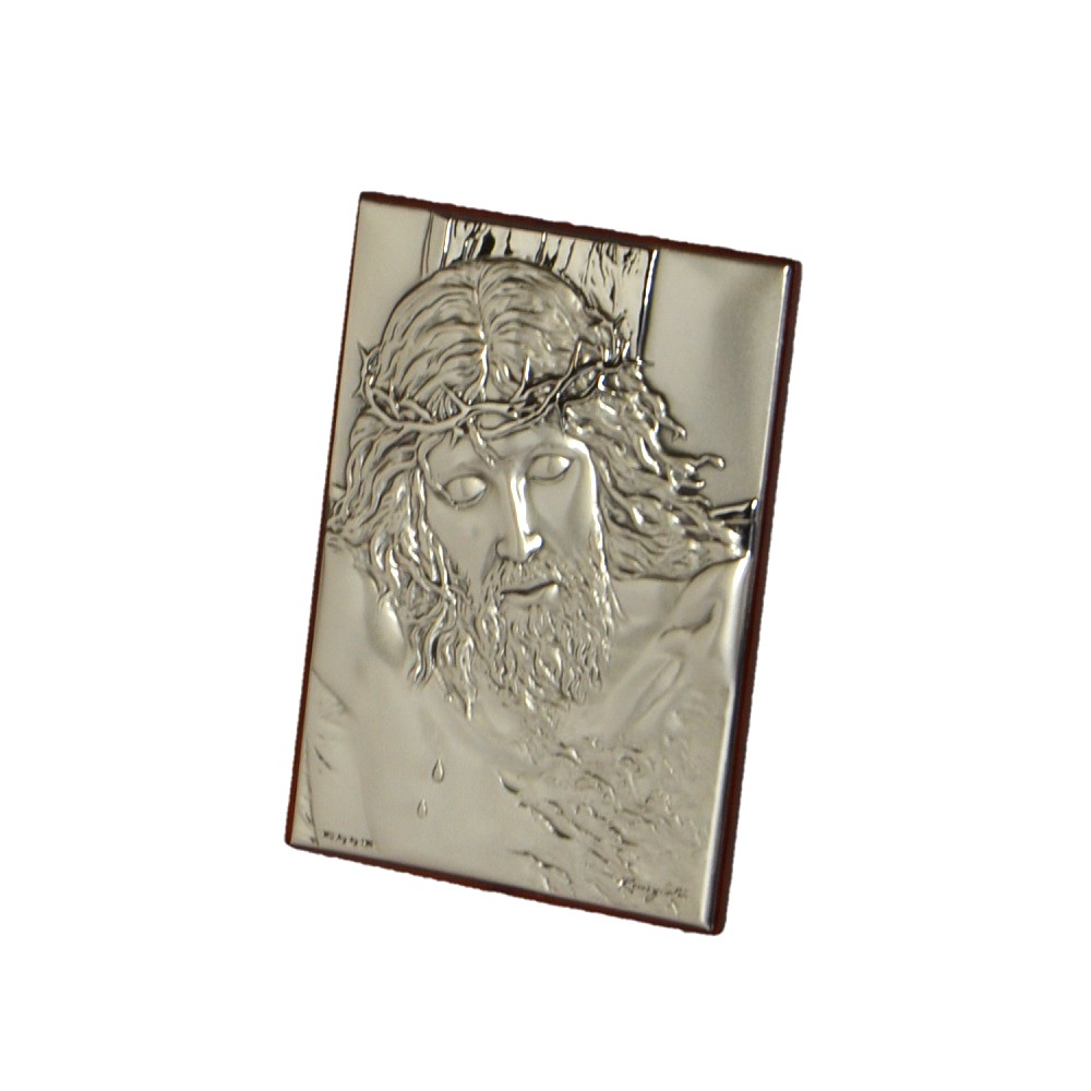 Icona Cristo in argento, retro in legno. Da appoggio o da appendere