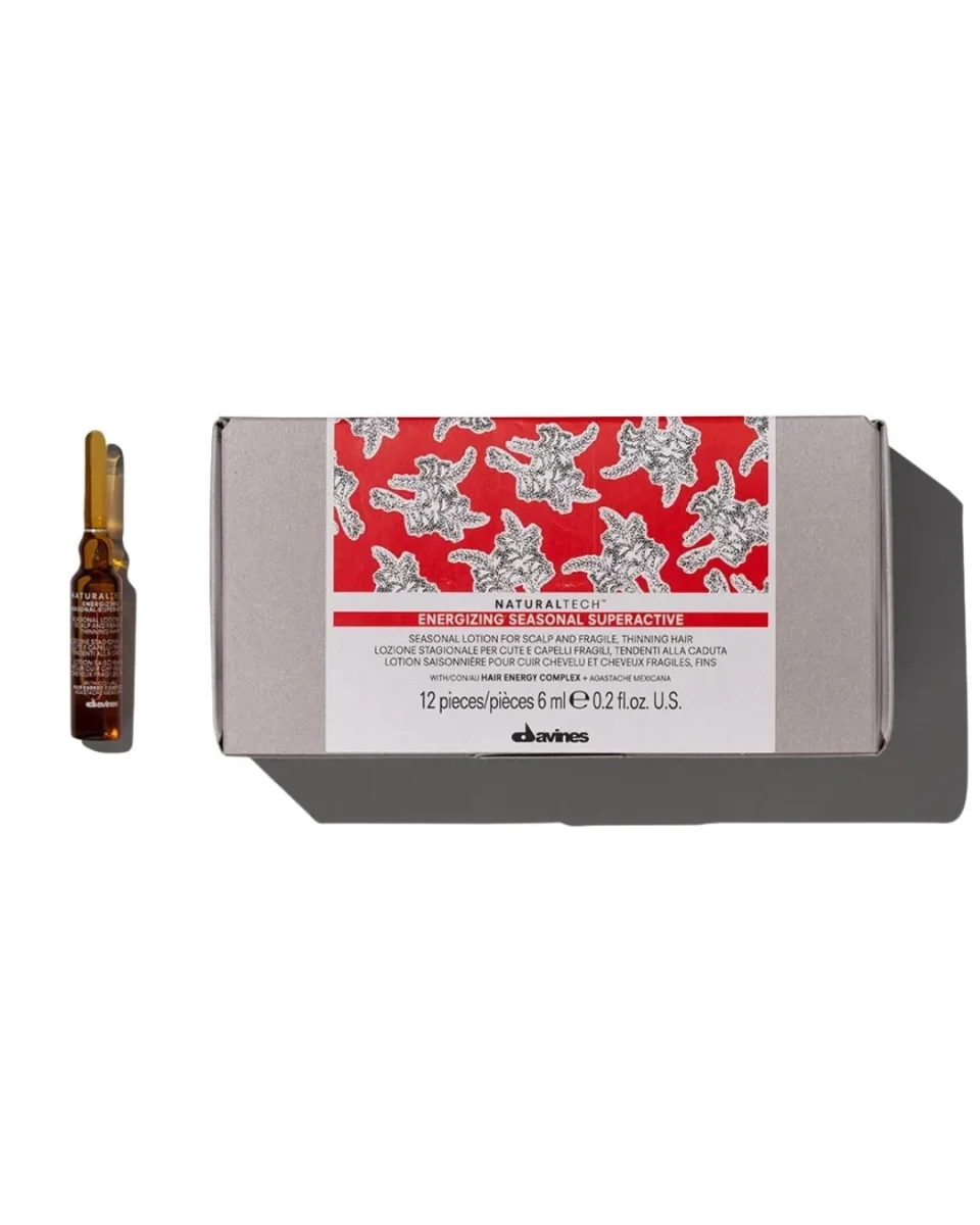 La Davines Energizing Seasonal Superactive Lotion 12 × 6 ml è un trattamento anti-caduta in fiale pensato per contrastare la perdita dei capelli dovuta a fattori stagionali o stress. Questa confezione contenente 12 fiale da 6 ml ciascuna consente un ciclo completo di applicazione.