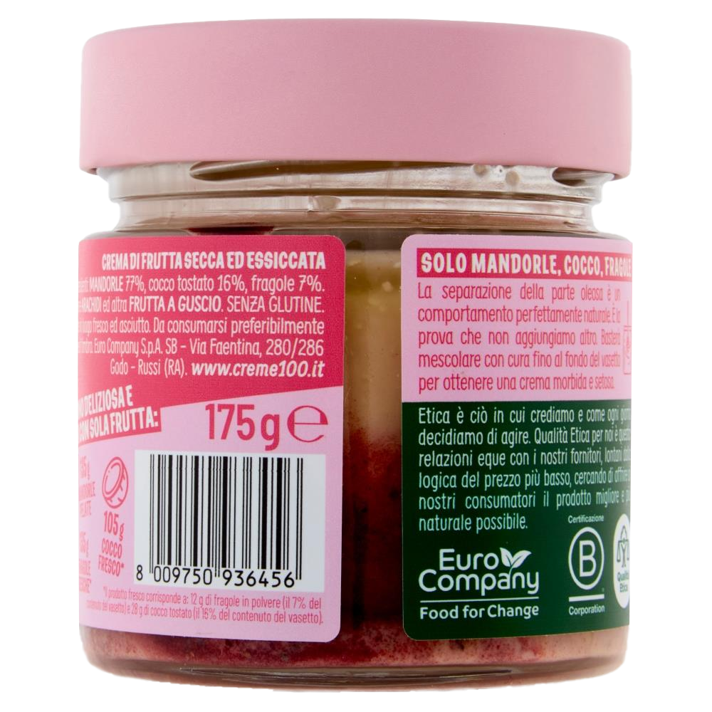 Scopri la nostra edizione speciale di Crema Pura di Mandorle, Cocco e Fragole, un delizioso connubio di sapori in un elegante barattolo da 175 g. Questa crema 100% naturale è realizzata con ingredienti selezionati, offrendo una consistenza vellutata e un gusto irresistibile.