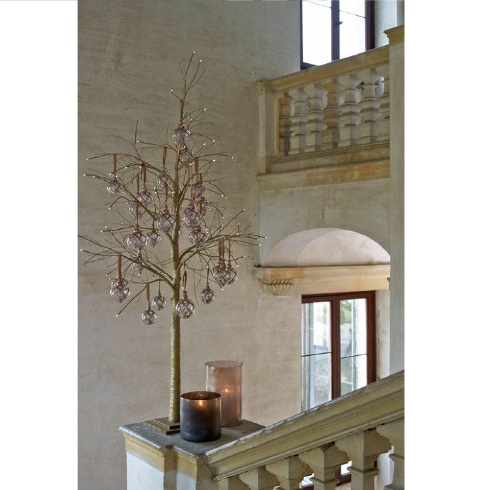 Faggio oro con 50 led decorato da noi con rami di eucalipto e foglie oro con glitter (come nella 1° fotografia). Decorazioni non incluse.