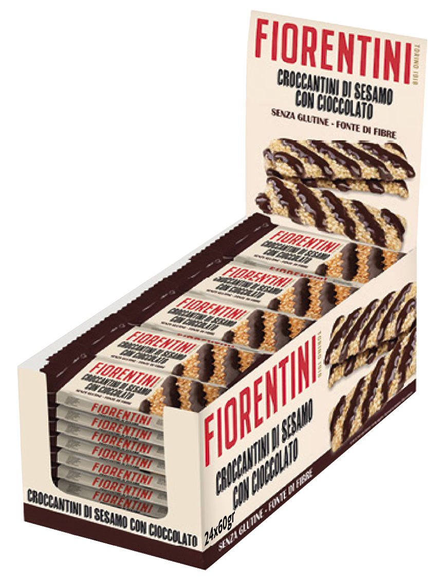 Scopri i deliziosi Croccantini di Sesamo con Cioccolato Fiorentini, una prelibatezza senza glutine che unisce il gusto croccante del sesamo al ricco sapore del cioccolato. Ogni confezione contiene 24 barrette da 60g, perfette come snack energetico o pausa golosa. Questi croccantini rappresentano una fonte di fibre e sono ideali per chi segue una dieta senza glutine senza rinunciare al gusto. La combinazione unica di sesamo e cioccolato crea un’esperienza di gusto irresistibile, mentre la texture croccante soddisfa il palato. Confezionati singolarmente per mantenere la freschezza e la praticità, sono perfetti da portare sempre con sé. Questa specialità italiana unisce la tradizione dolciaria alla moderna attenzione per le esigenze alimentari, offrendo uno snack gustoso e di qualità per tutti gli amanti dei dolci.