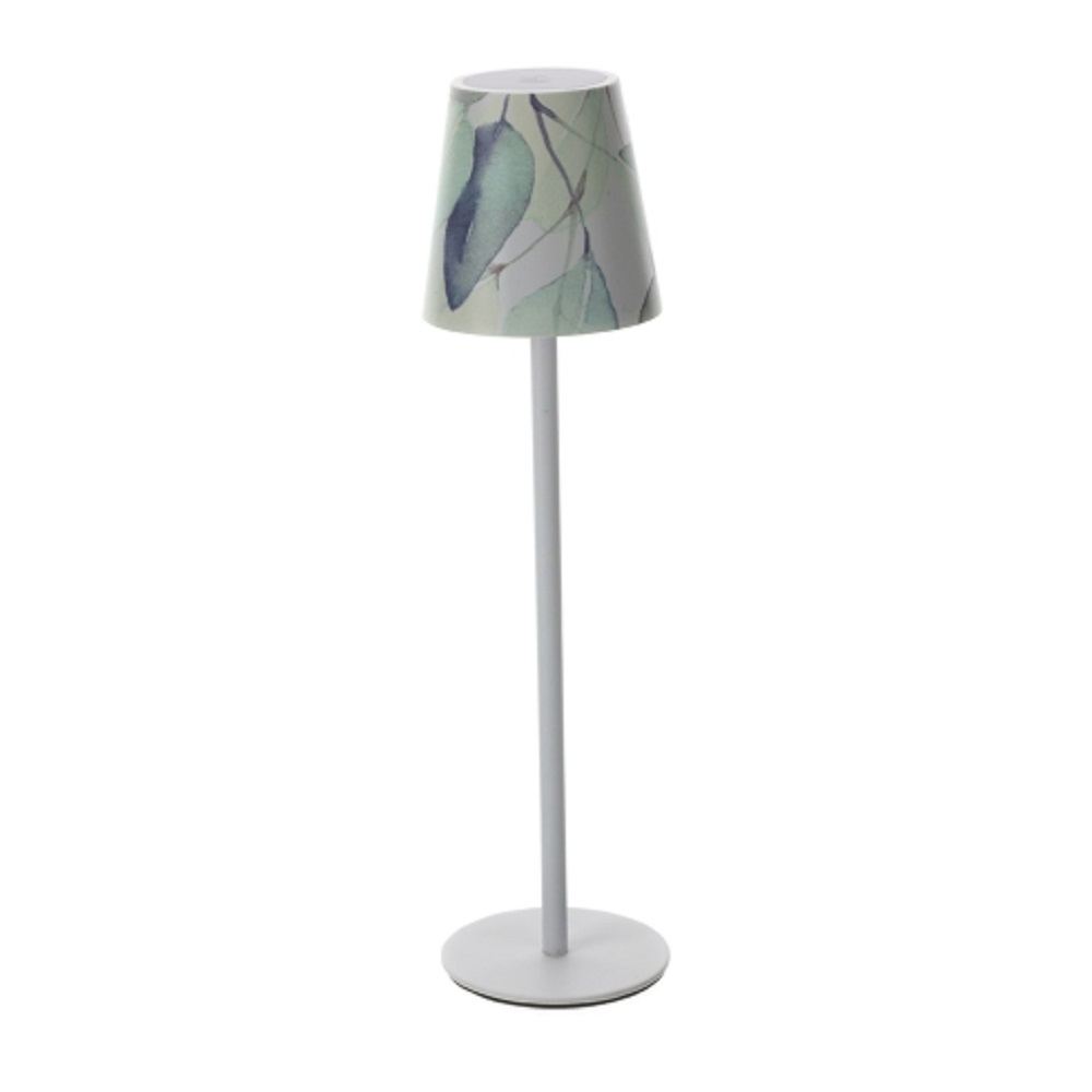 Lampada led da tavolo in metallo bianco satinato con decoro botanico e 3 tonalità di luce: calda, fredda e naturale. Cavo USB per ricarica incluso