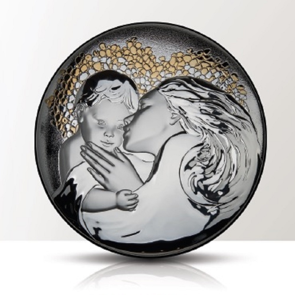Icona tonda moderna maternità con dettagli oro, retro in legno. Da appoggio o da appendere