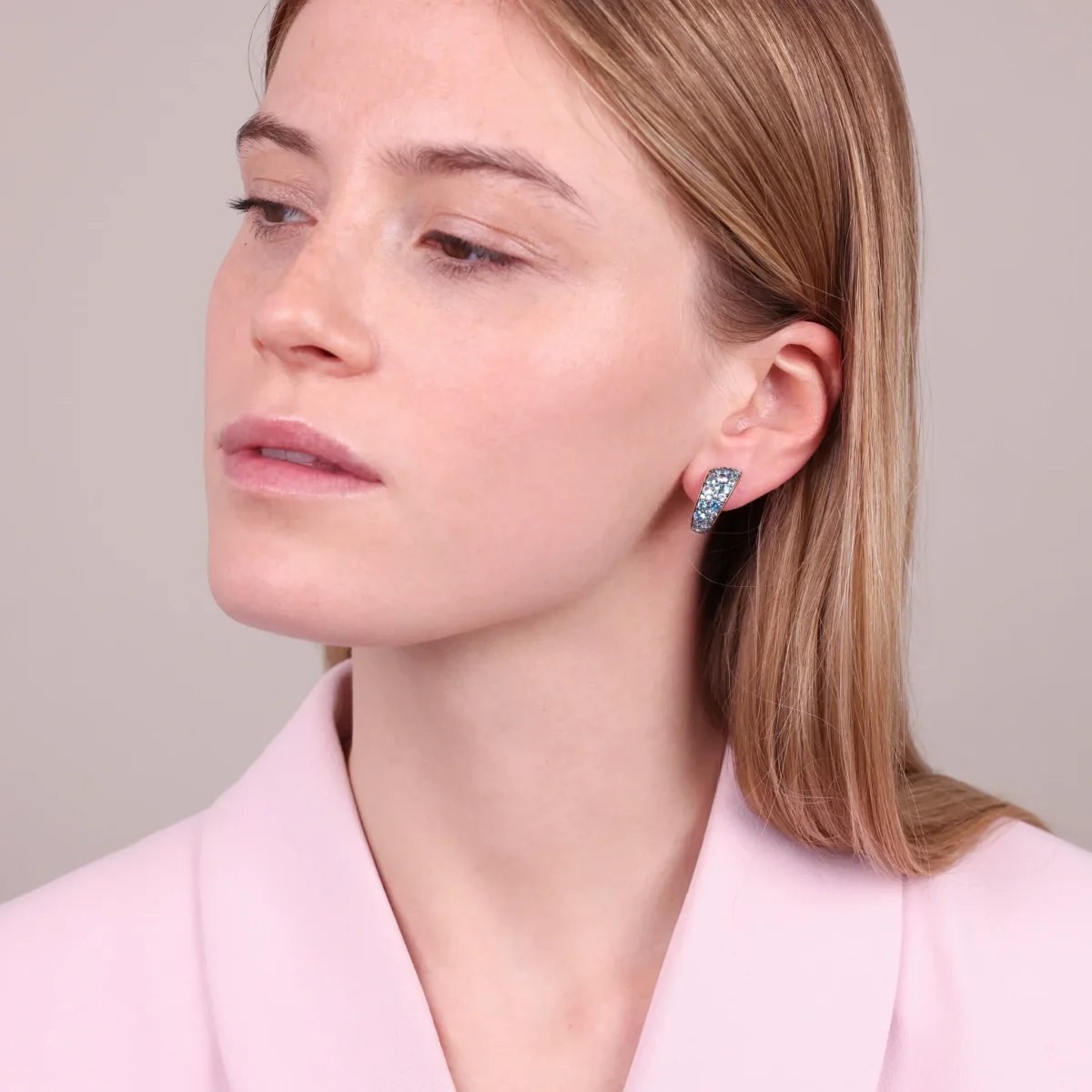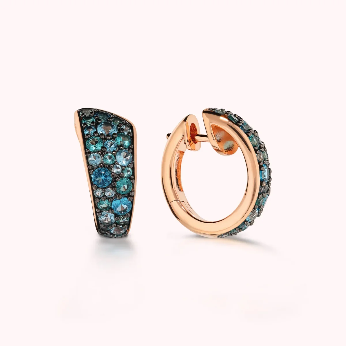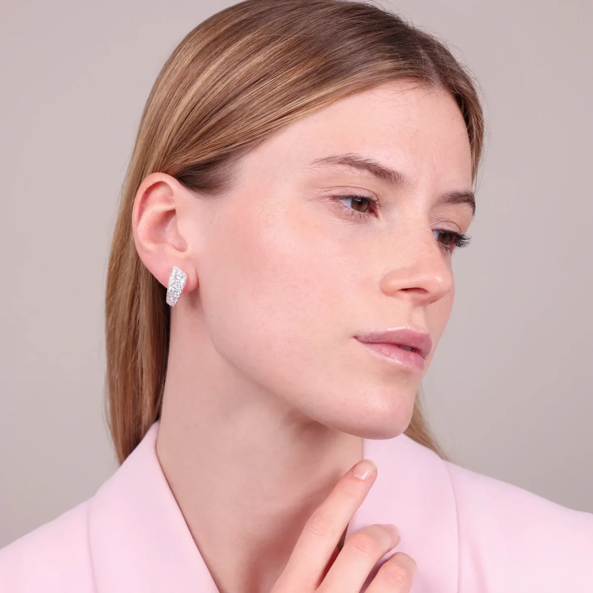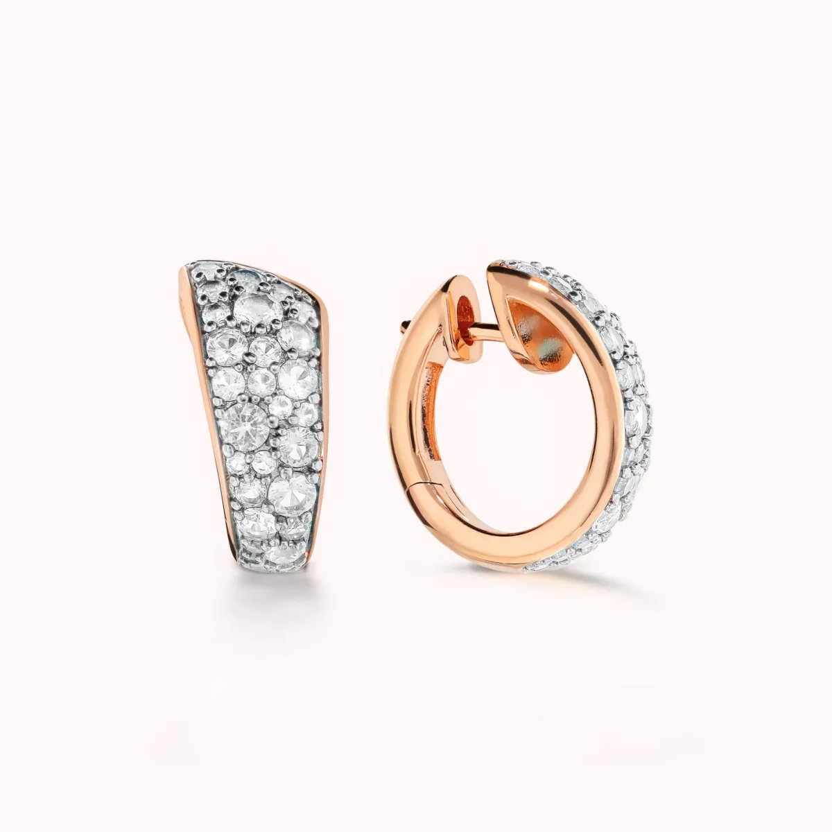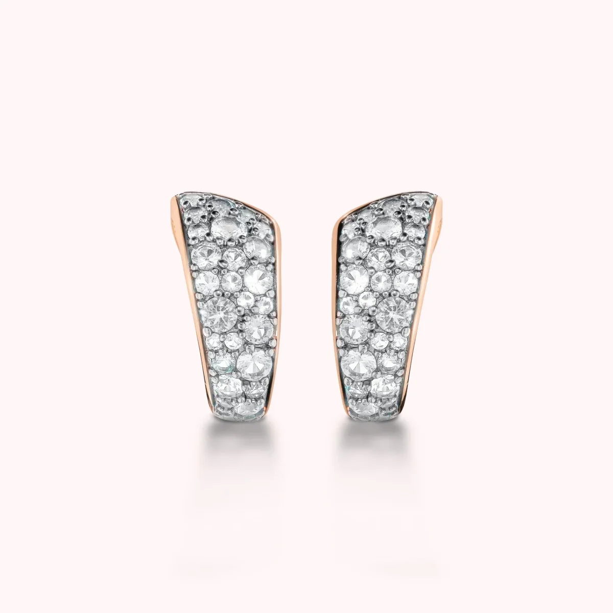 Orecchini a lobo Bronzallure realizzati in lega Golden Rosé, placcata Oro rosa 18kt, dal design graduato con superficie in pavé di cubic zirconia, qualità luminosa.