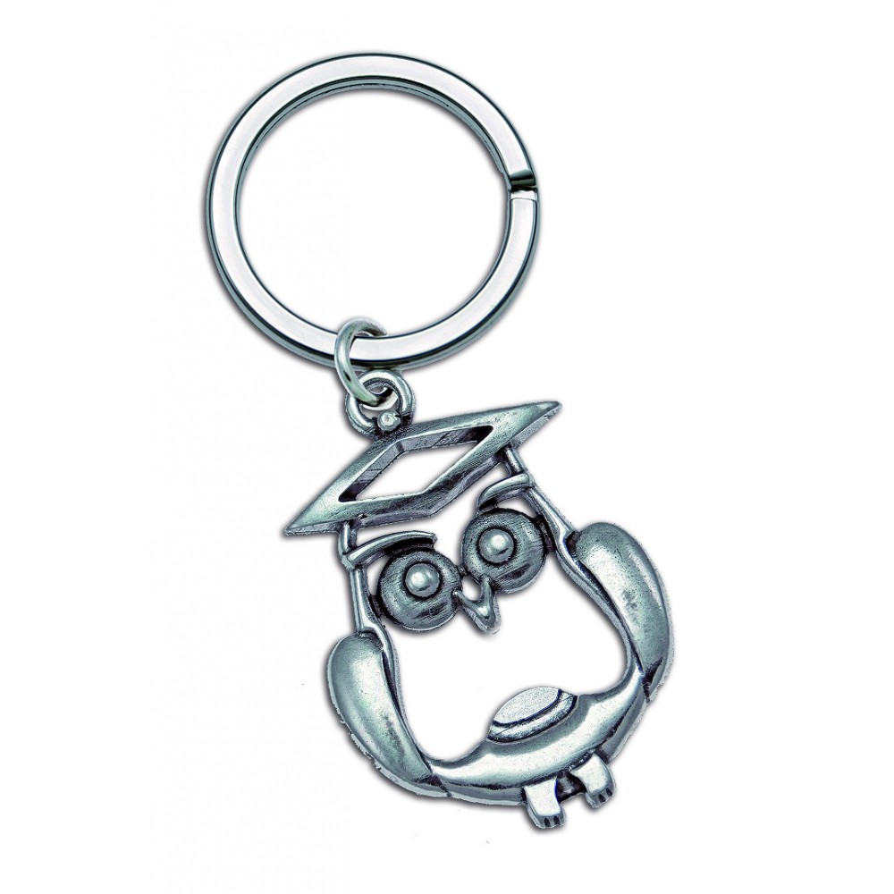 Portachiavi gufo con tocco Laurea in argento
