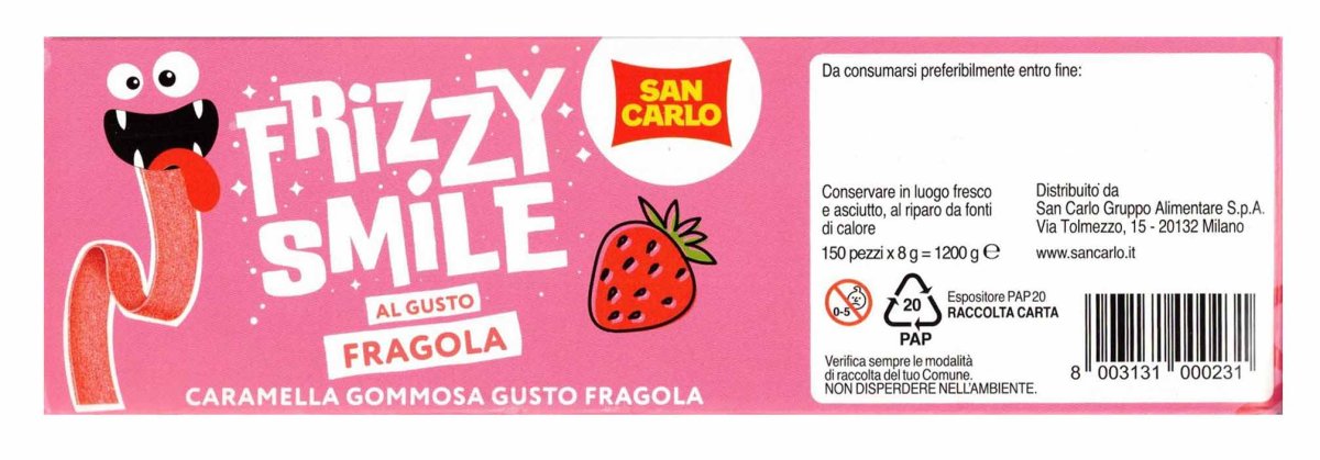 Scopri il dolce mondo delle caramelle gommose San Carlo Frizzy Smile al gusto fragola! Ogni box contiene 150 monoporzioni da 8 grammi, perfette per soddisfare la tua voglia di dolcezza in qualsiasi momento della giornata. Queste caramelle non sono solo deliziose, ma anche frizzanti, regalando un’esperienza unica ad ogni morso. La loro consistenza morbida e il sapore intenso di fragola ti faranno sorridere e ti porteranno indietro nel tempo, ai momenti spensierati dell’infanzia. Ideali da condividere con amici e familiari o da gustare in solitudine, le caramelle Frizzy Smile sono perfette per feste, eventi o semplicemente per un dolce momento di pausa.