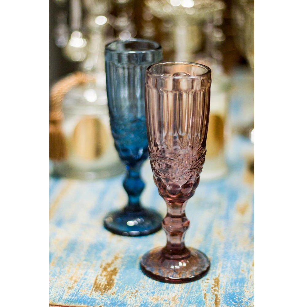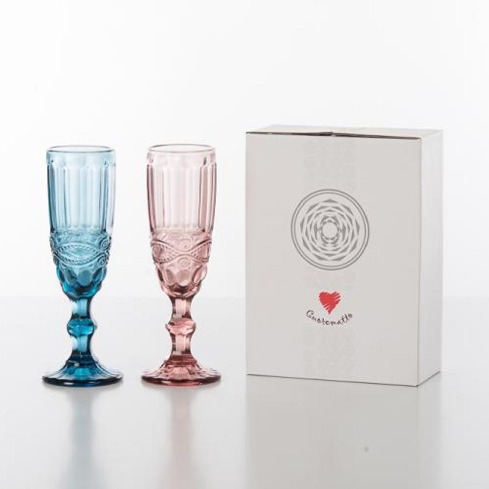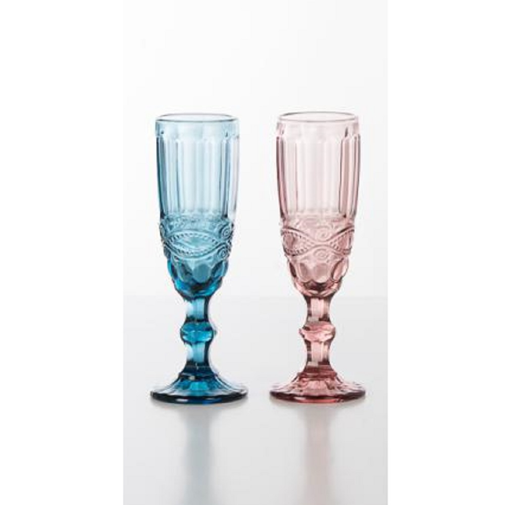 Set da 2 flute in vetro decorato e colorato (blu e rosa)